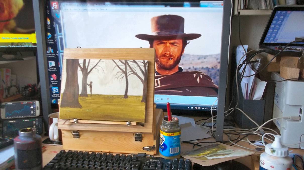 Battle of Hastings. While painting this canvas I watched a Clint Eastwood film.
