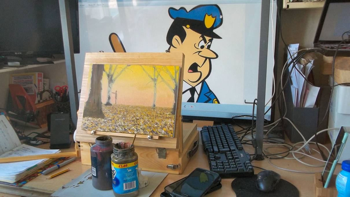 Painting with distractions in the background always helps. Soon it was finished