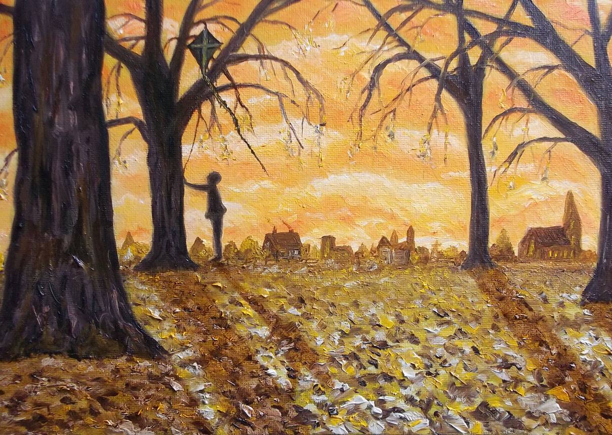 few and I kept an autumnal feel to it. The lad who was crying is looking up forlornly