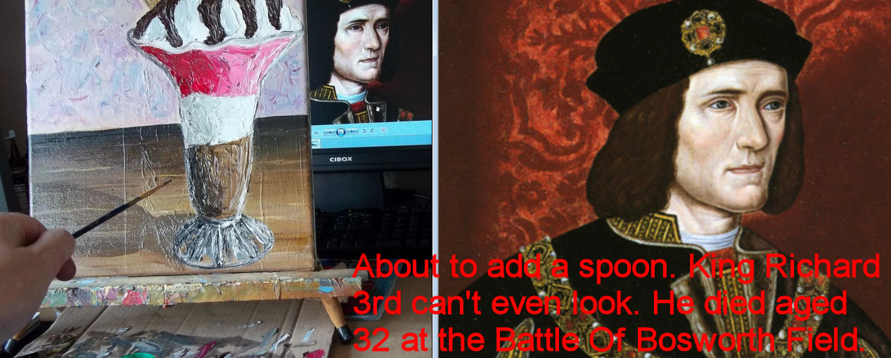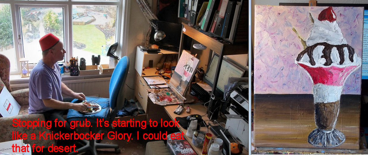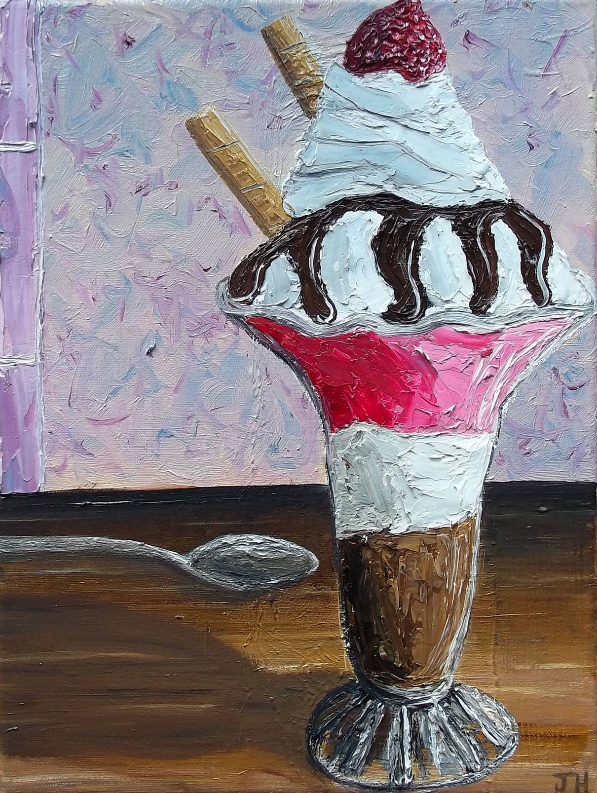 this painting with brushes then added the ice cream with a knife. It went okay though