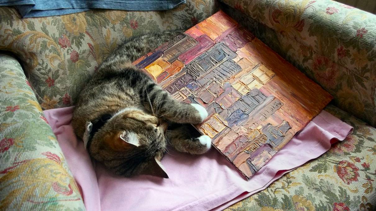 mind except oblong blocks. I dabbed on some ‘windows’ and soon the canvas was