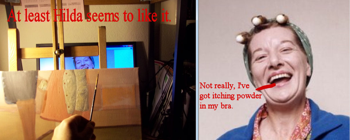 on the lady’s leg in the photograph. I did not put these on the painting.