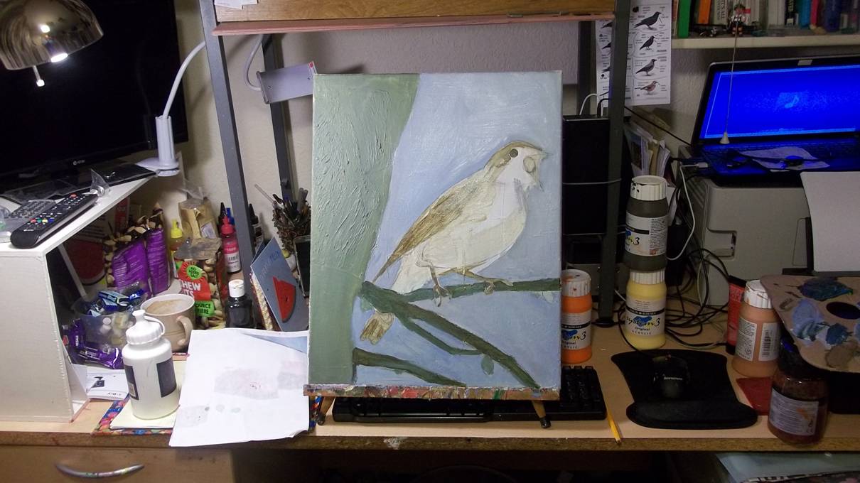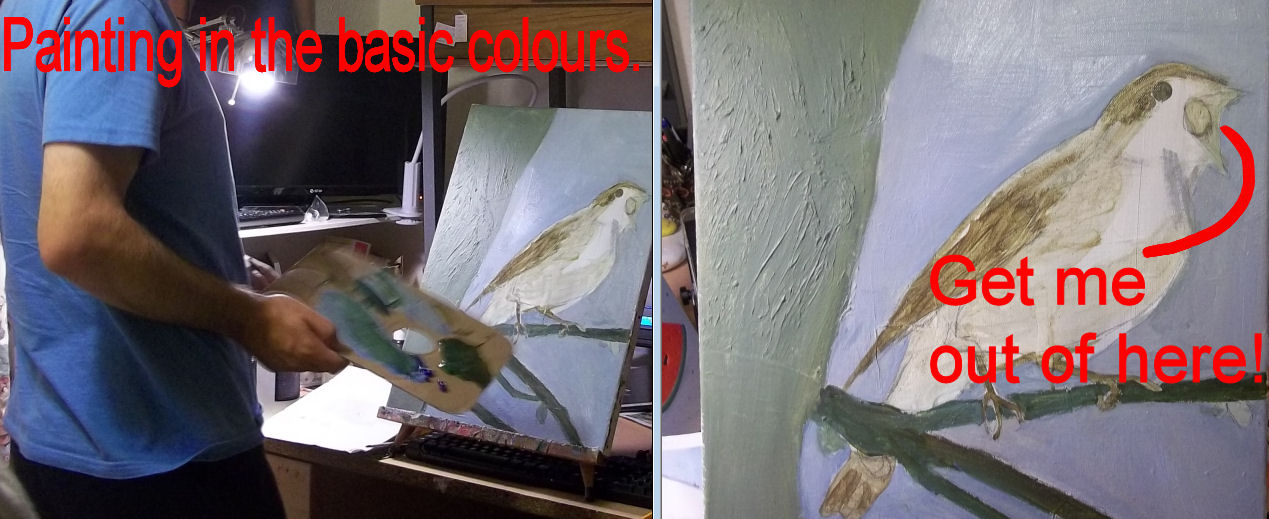still remnants of it on the sky area.) As usual I blocked in the tree, branch
