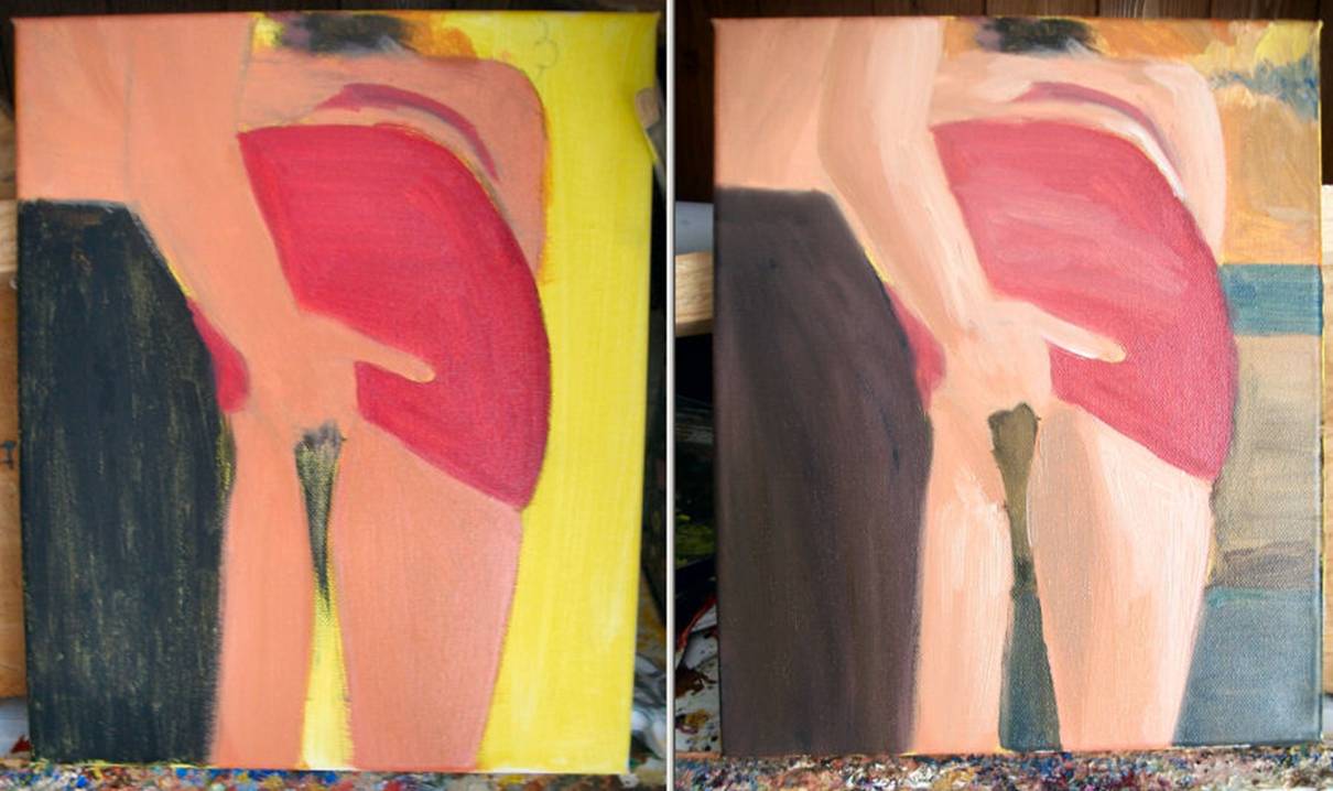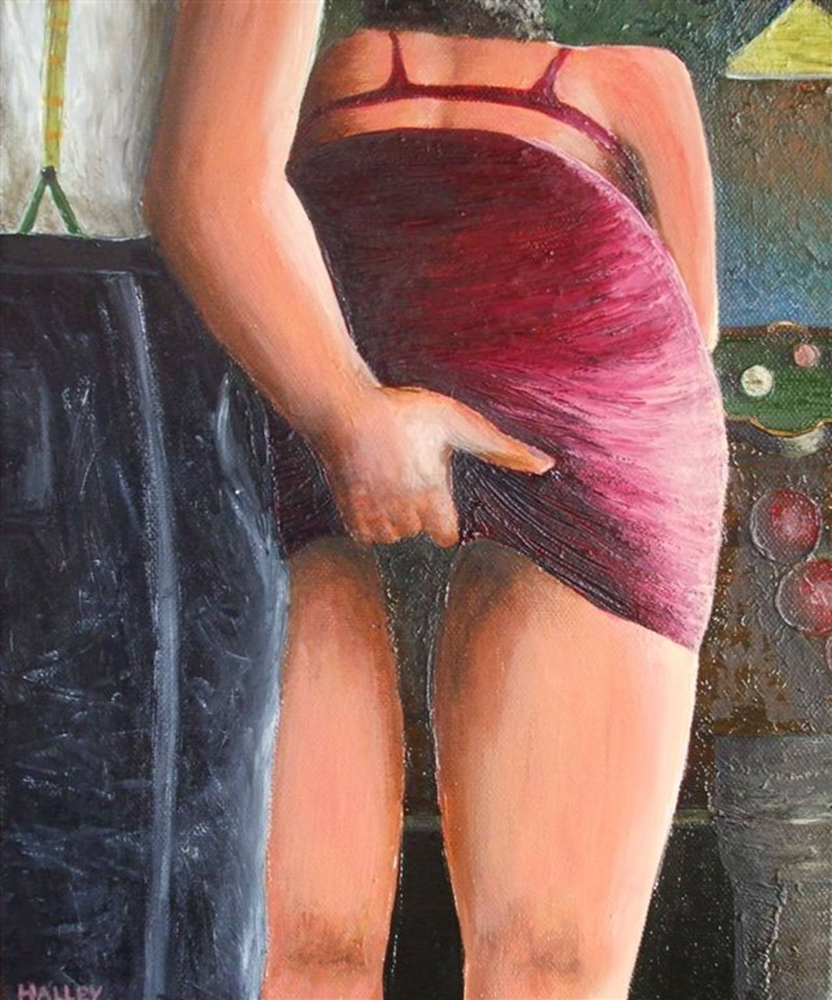 title. I painted the woman bent over a snooker table. This was difficult as I