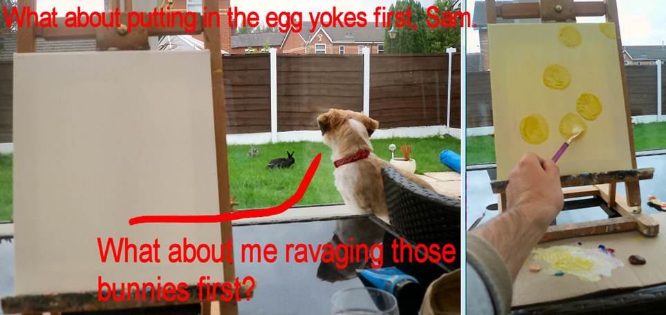 I have painted some runny eggs here while I was letting a friend’s rabbits