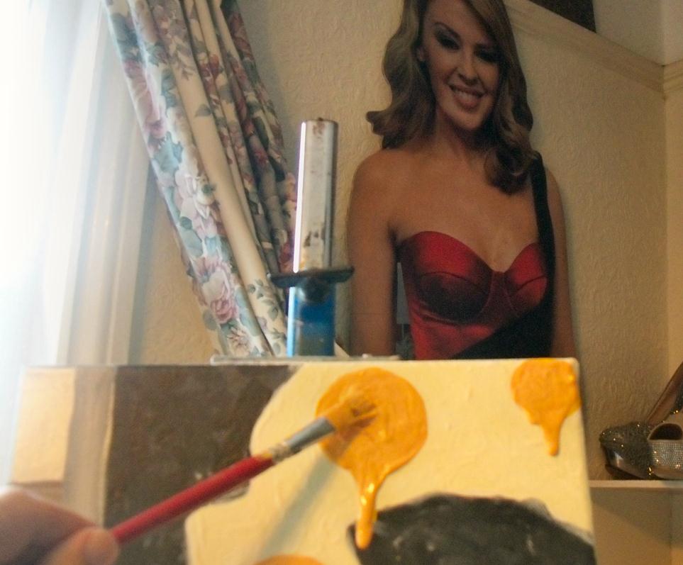 this. This painting was done quickly with acrylic paint on a canvas from Poundland. The cheaper the paints more runny they are so I
