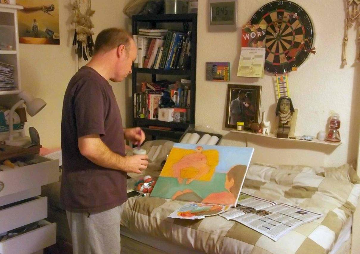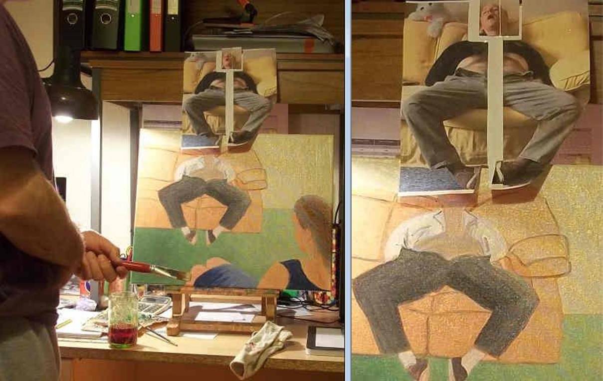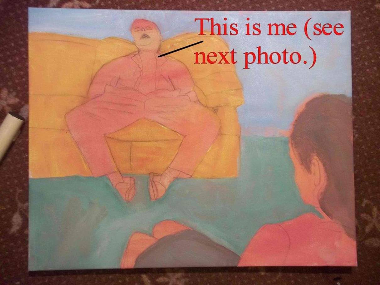the couch. As you can see I took a photo of myself on a couch and just painted