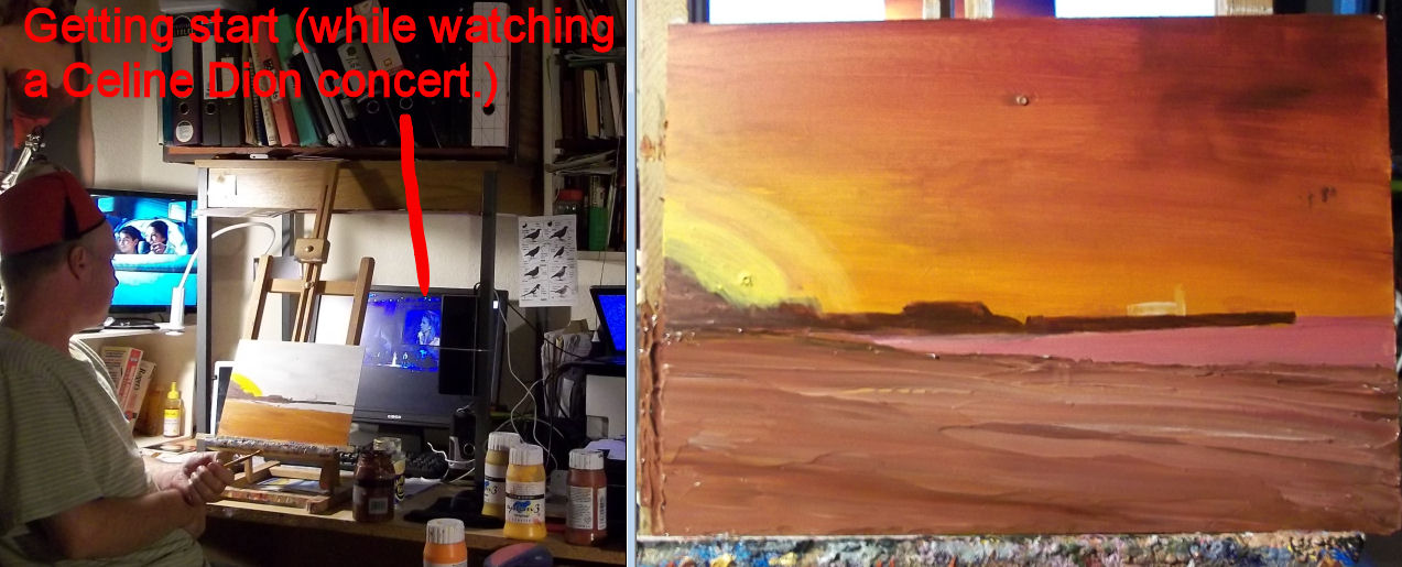 I did this one with knives in quick-drying acrylic paint on a bit of
