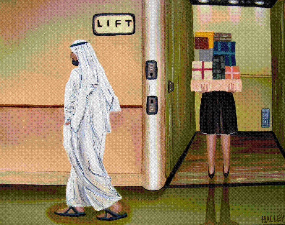 Harrods once when an Arab is full robes appeared with a body guard as fat as a