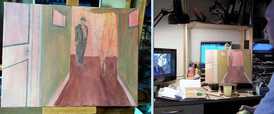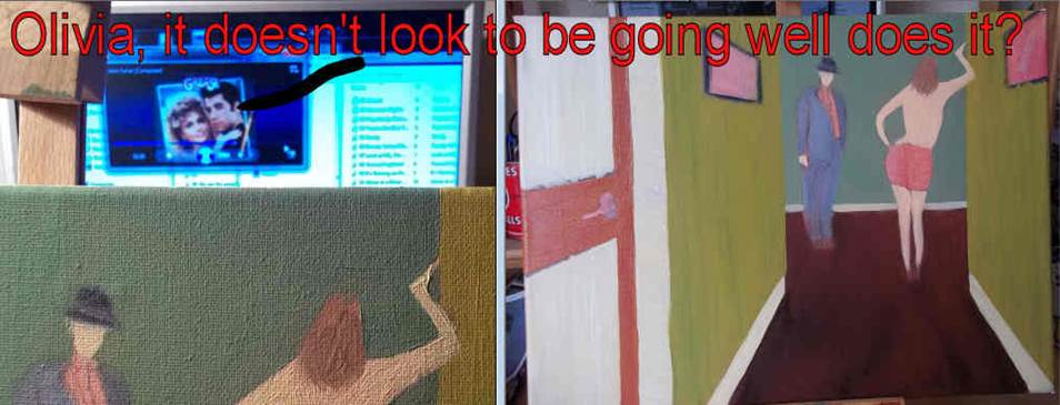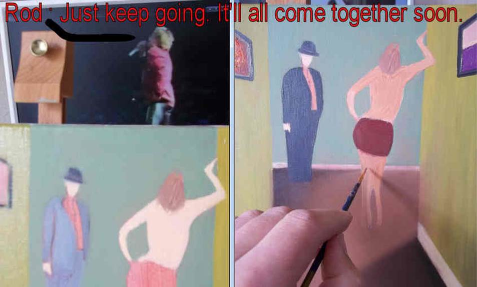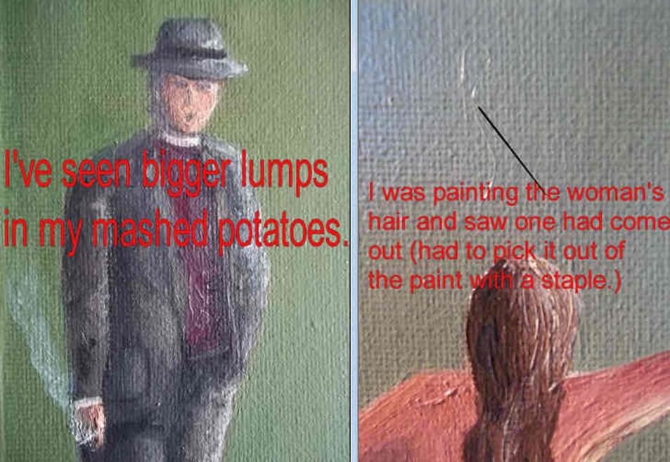 the two figures. I took a wee dab of white and painted a collar on him. I tried
