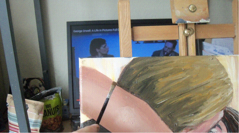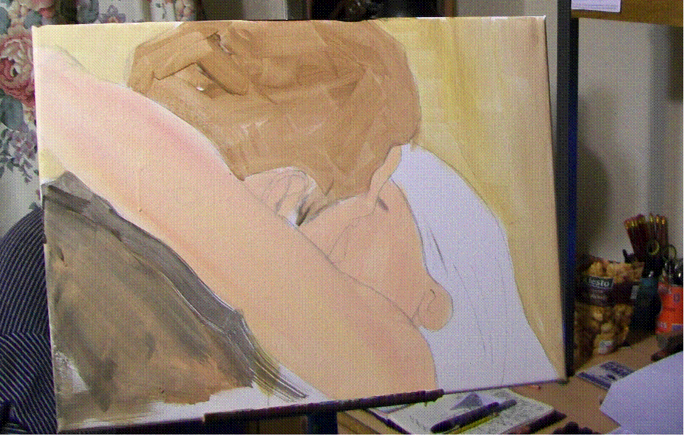 quickly in a few colours in broad naive brush strokes. Painting human beings so