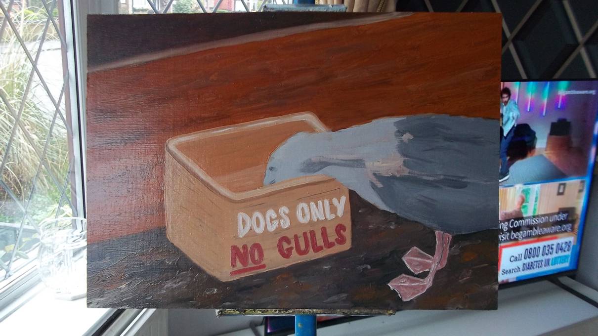 The gull - painted firstly in acrylic paint -
