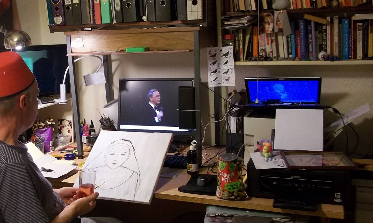 here is the painting done on a canvas I'd started years ago and forgotten about