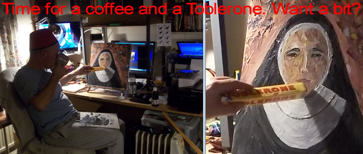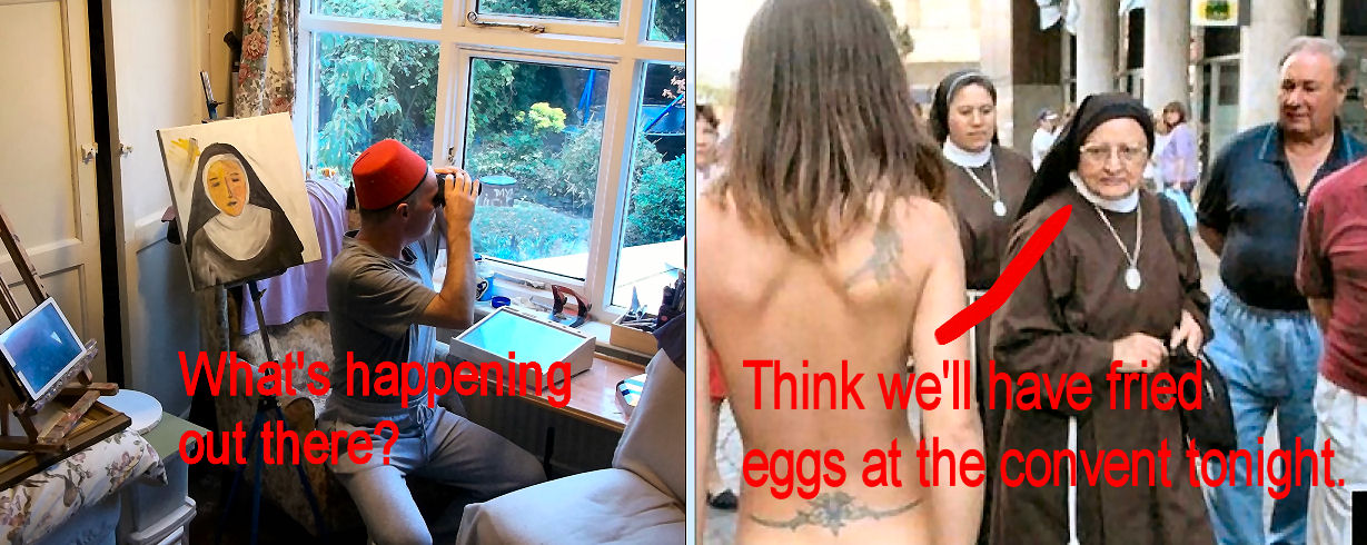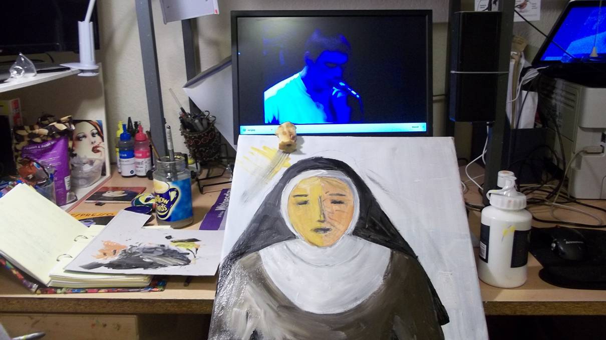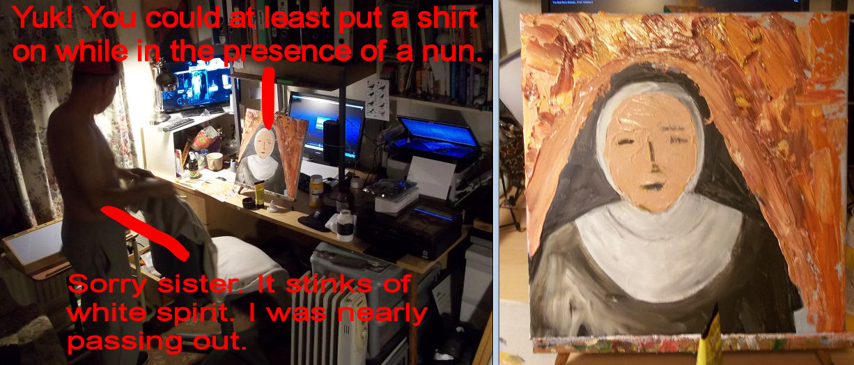 afternoon I thought I'd paint the unsmiling nun - perhaps to exorcise some