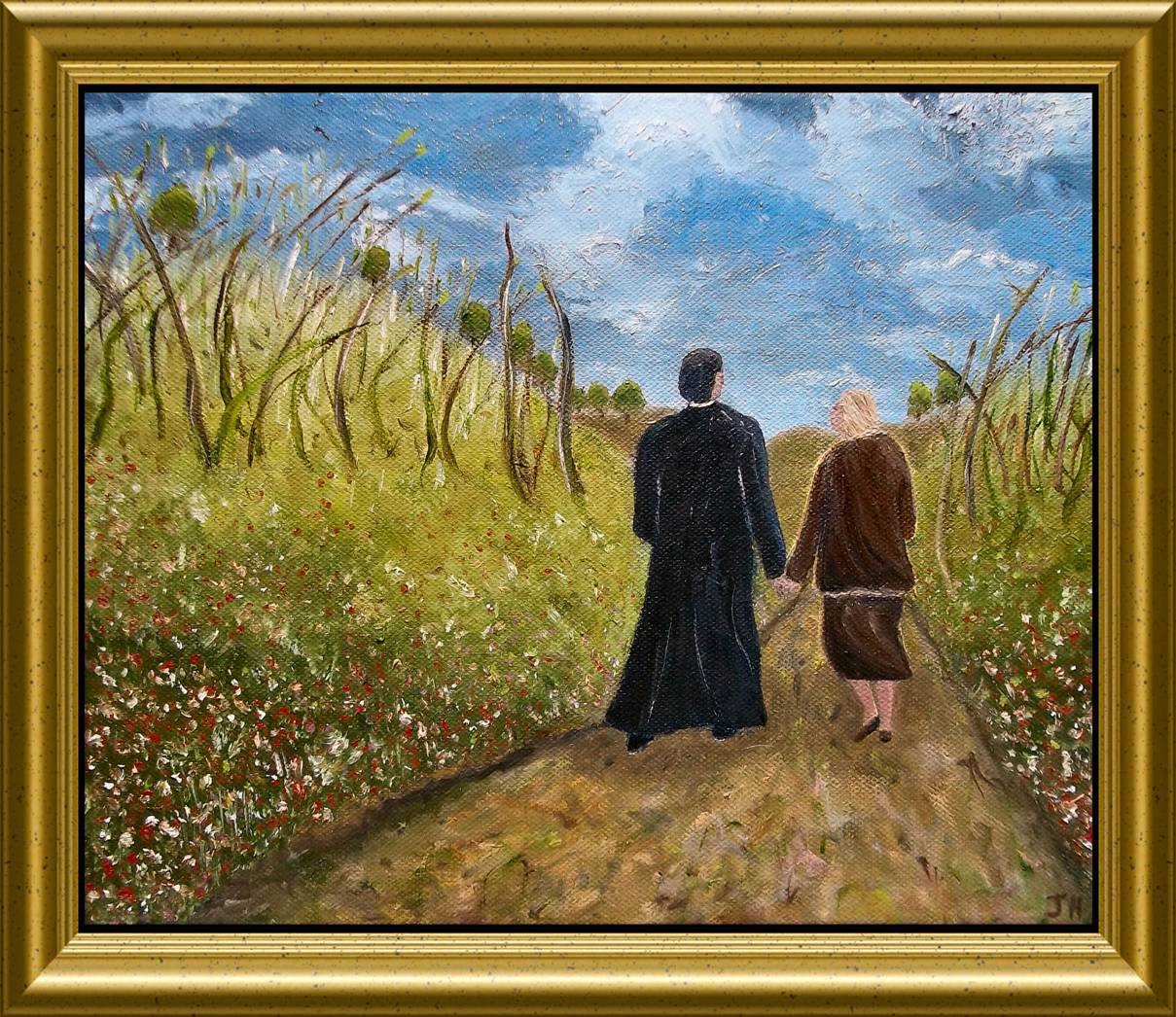 canvas. To give some dimension I put them on a narrowing path with some foliage